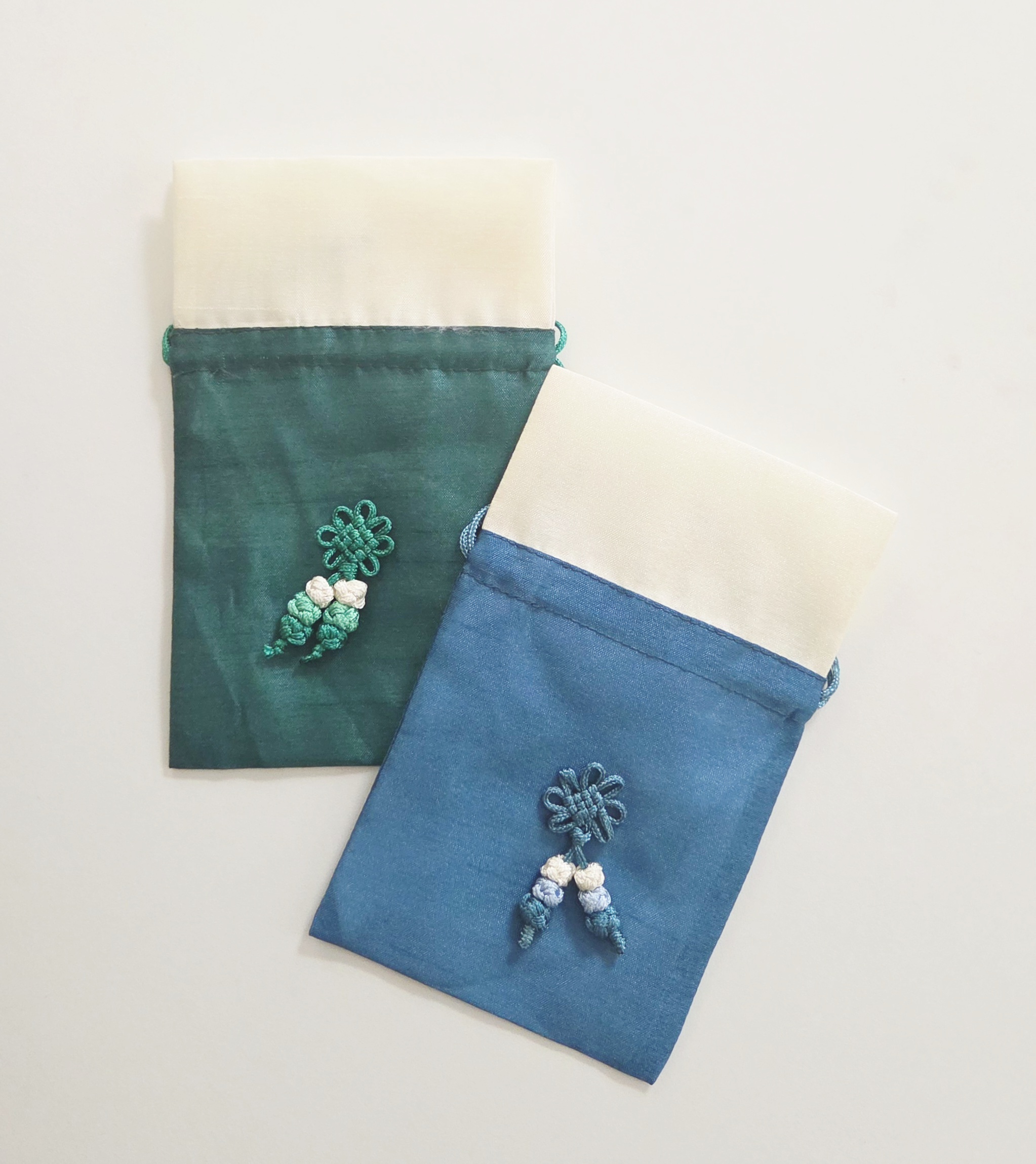 The traditional small Korean silk pouches are called Bokjumeoni (복주머니) in English, which literally translates to “lucky pouch” or “fortune pouch”.