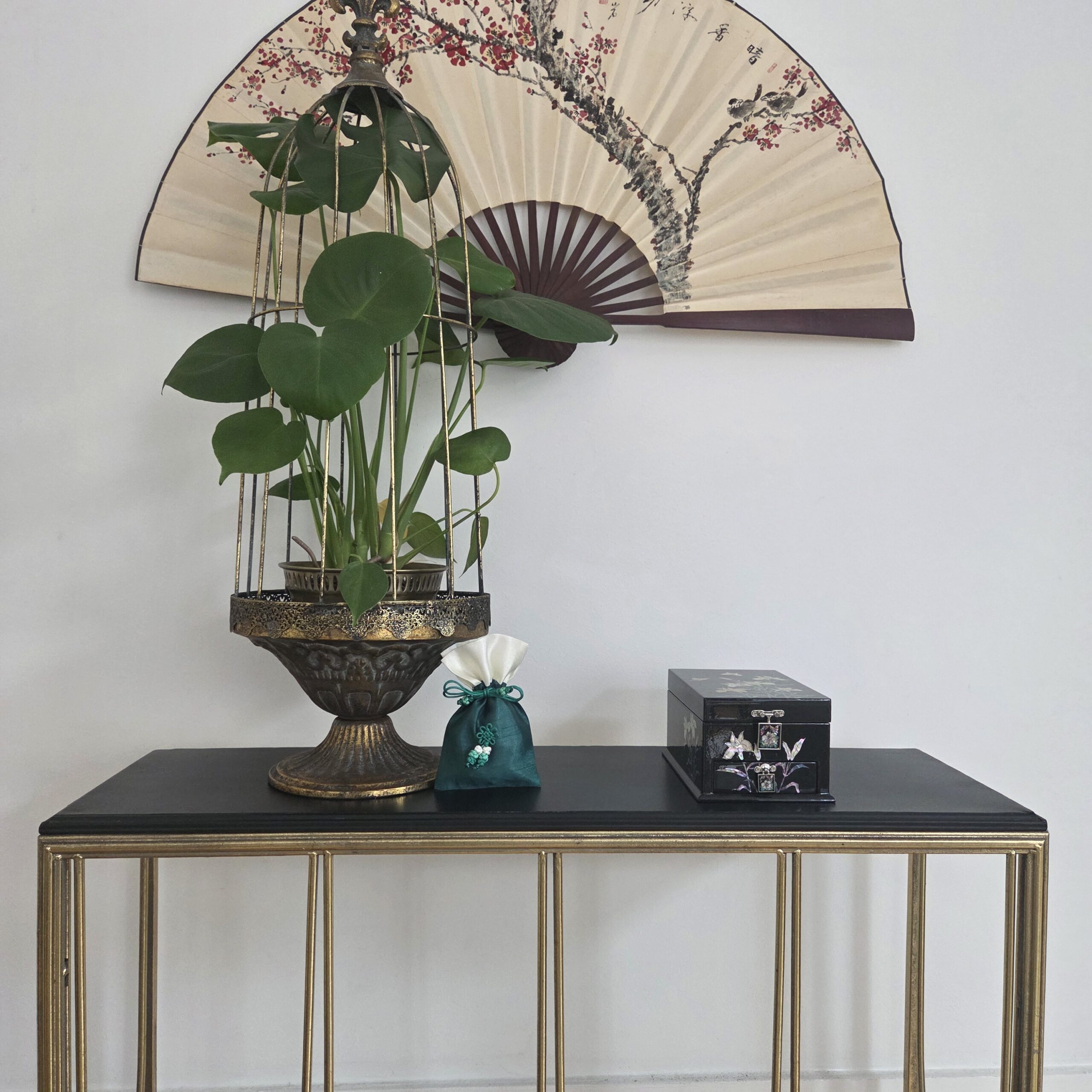 • Design: These are small drawstring pouches, typically made of silk or satin and adorned with intricate embroidery, traditional patterns, or symbols for longevity.