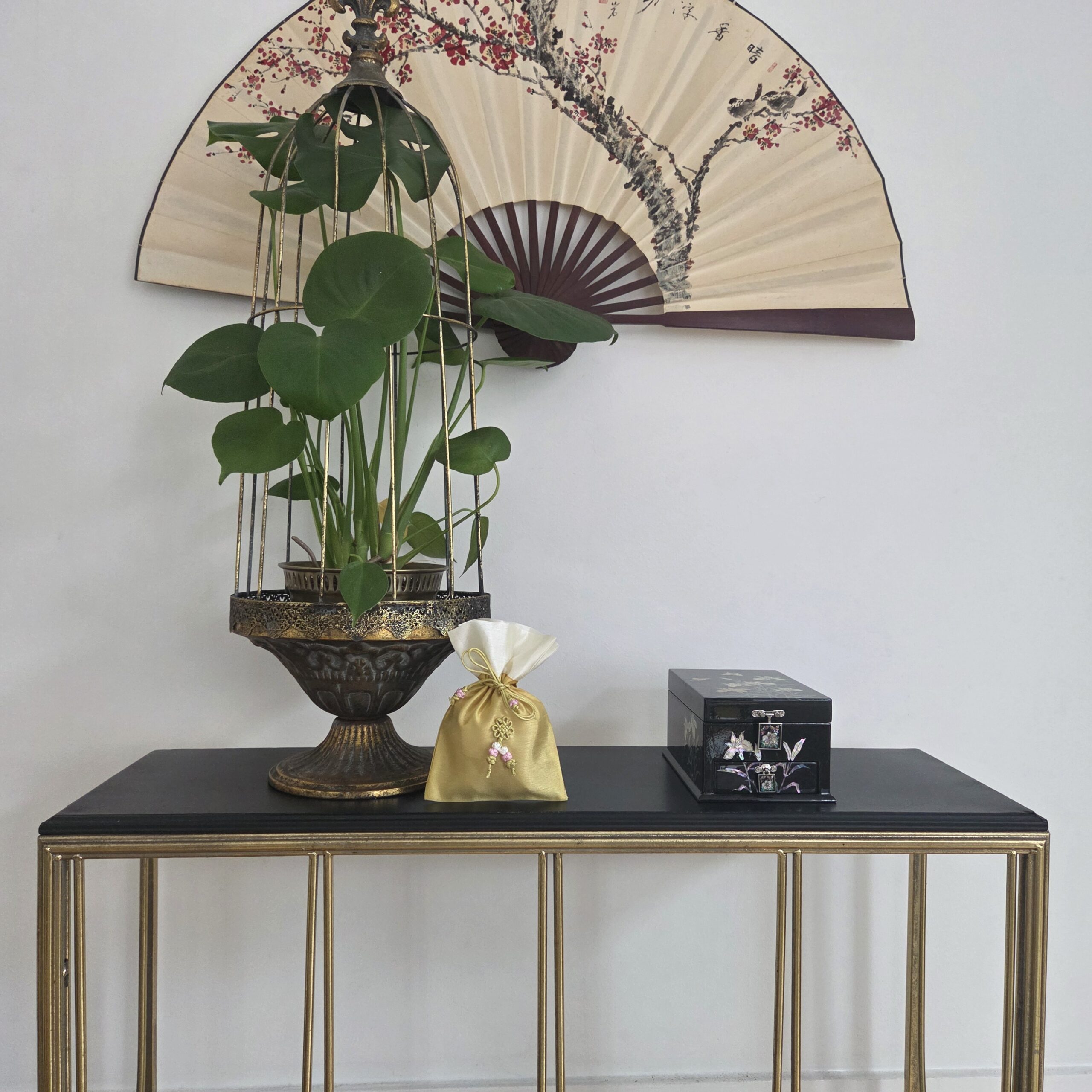 The traditional small Korean silk pouches are called Bokjumeoni (복주머니) in English, which literally translates to “lucky pouch” or “fortune pouch”.