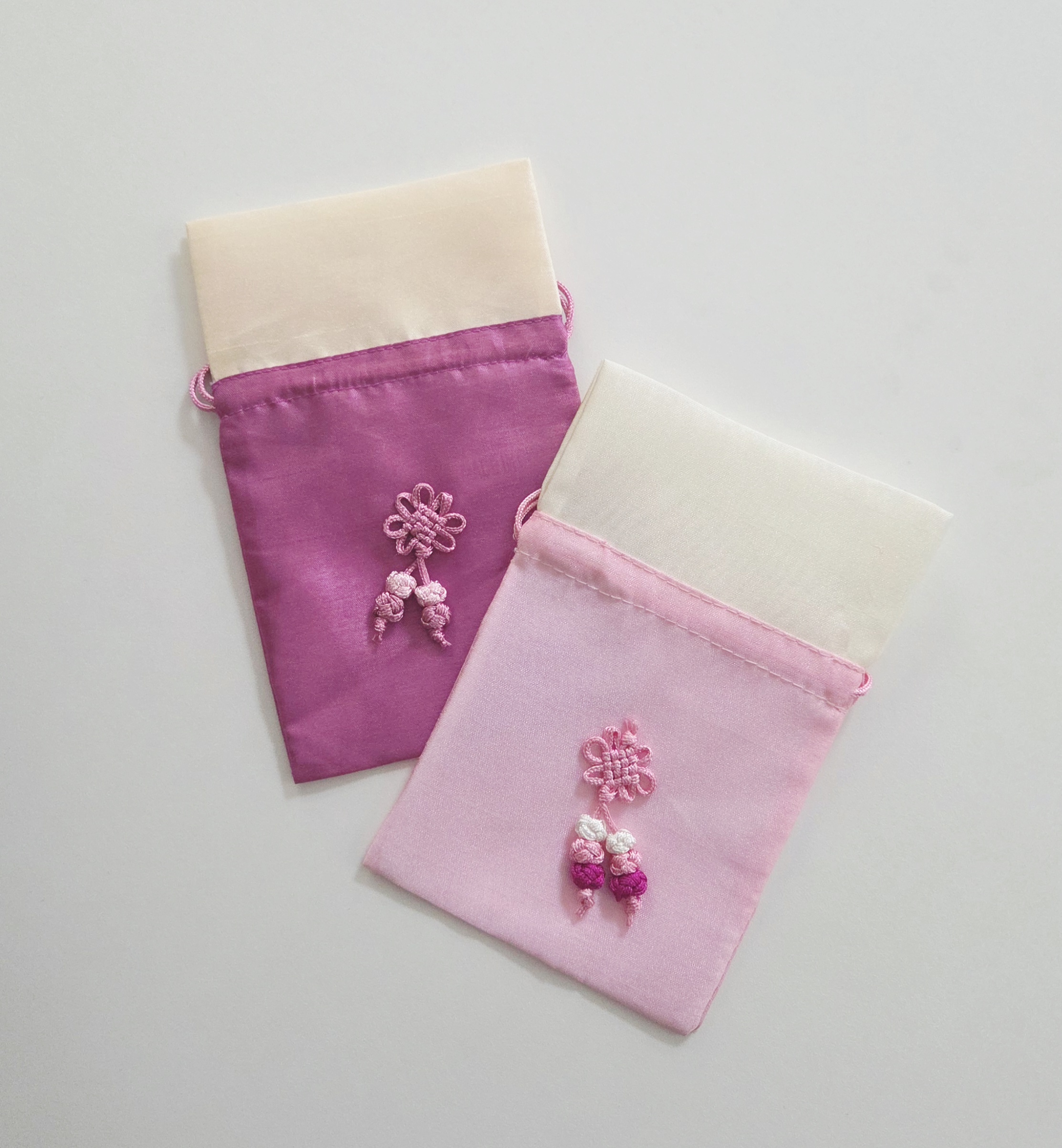 The traditional small Korean silk pouches are called Bokjumeoni (복주머니) in English, which literally translates to “lucky pouch” or “fortune pouch”.