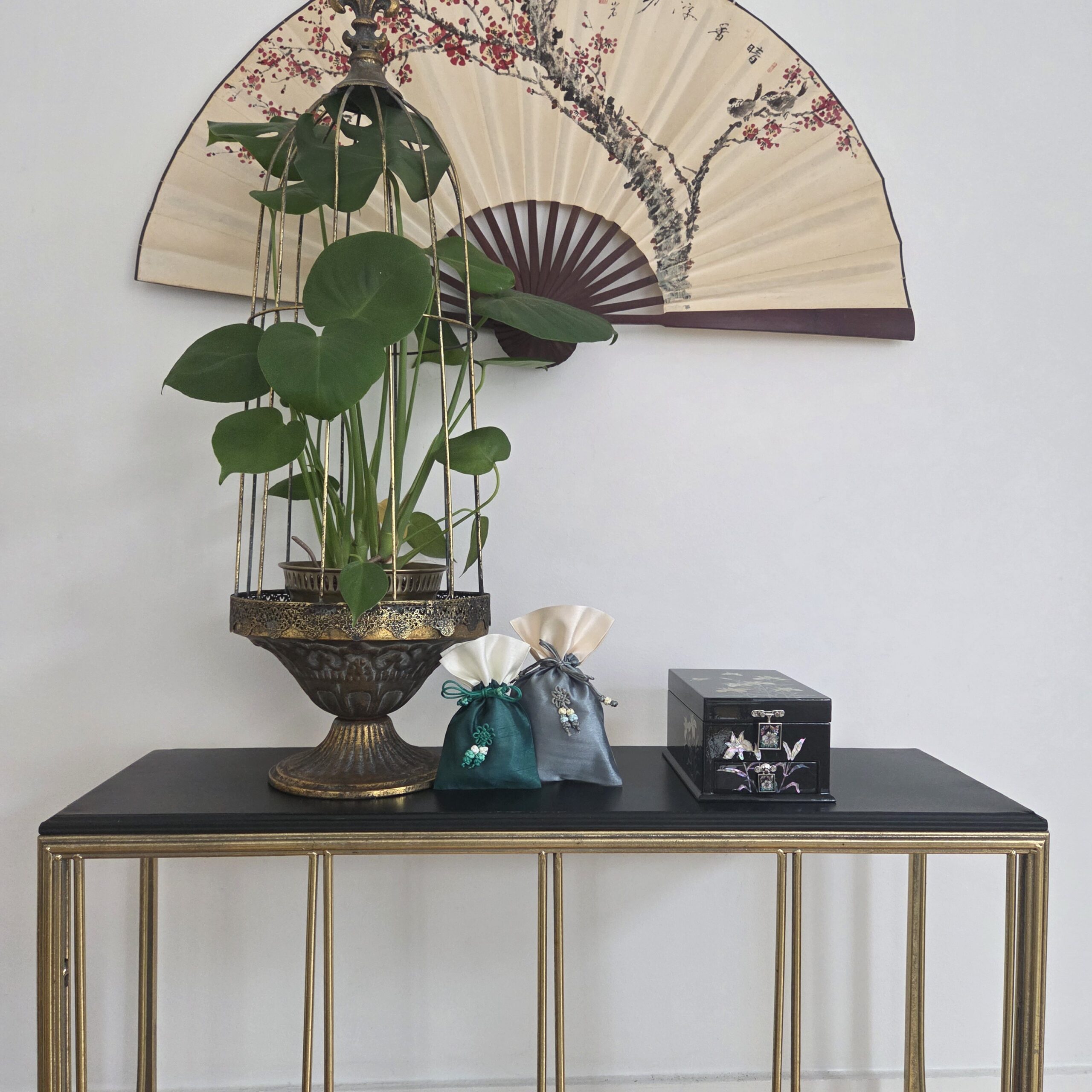 The traditional small Korean silk pouches are called Bokjumeoni (복주머니) in English, which literally translates to “lucky pouch” or “fortune pouch”.