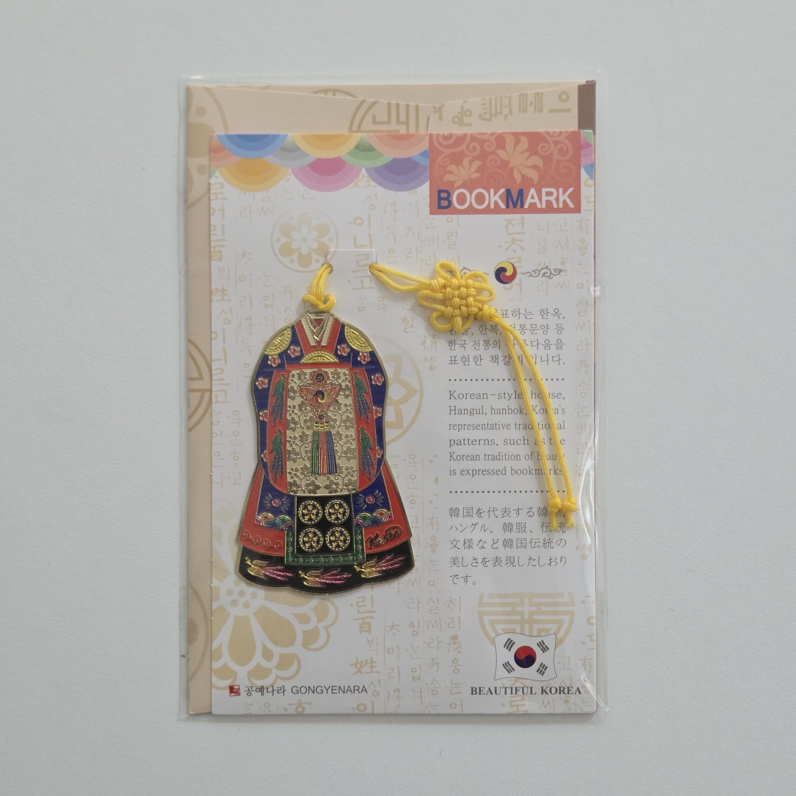 It’s a bookmark that expresses the beauty of Korean traditions such as Hanok, Hangeul, Hanbok, and traditional patterns representing Korea.
