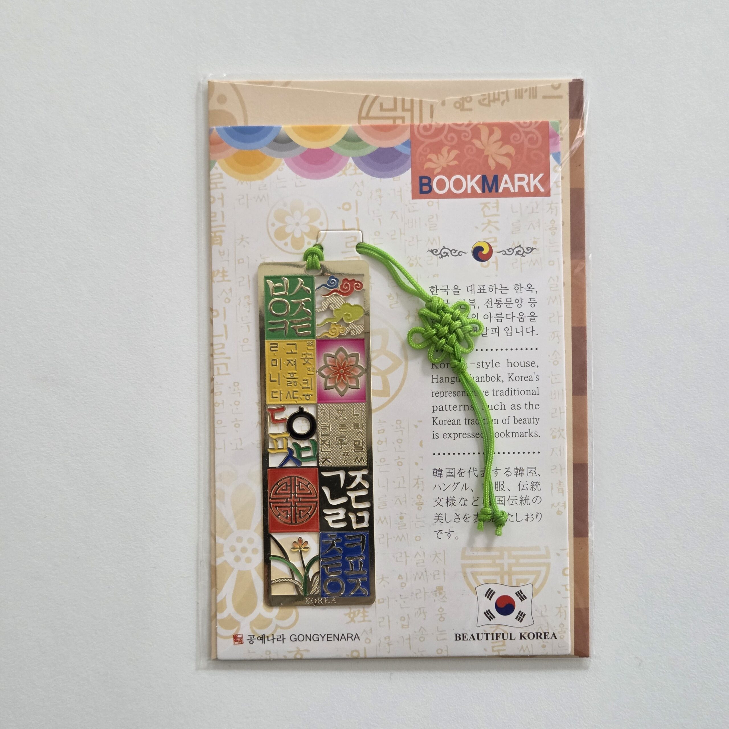 It’s a bookmark that expresses the beauty of Korean traditions such as Hanok, Hangeul, Hanbok, and traditional patterns representing Korea.